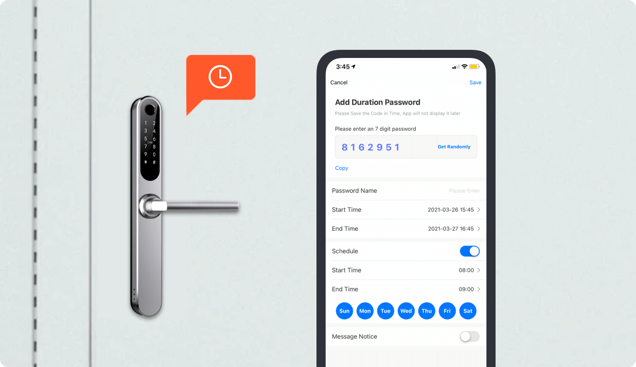 As a housekeeper, the smart lock can inform a user of everything that is happening at the door, such as real-time unlocking records and doorbell ringing records. It can also notify the user when a specified family member returns home.