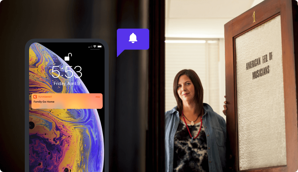 When a visitor arrives, you can have a real-time video talk with the smart video doorbell and open the door with one tap of your finger. All the video doorbells and smart locks in the Tuya ecosystem can be linked.